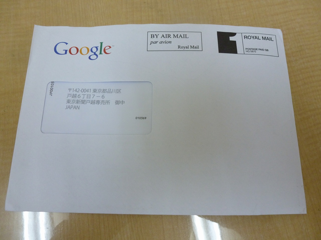 「Google」さんからの封筒