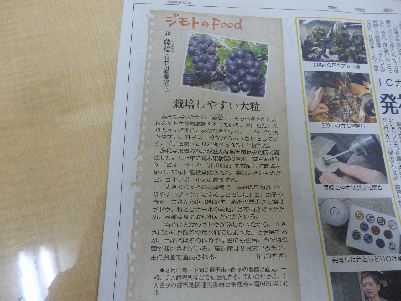 今日の朝刊の最終30面 「ジモトのFOOD」