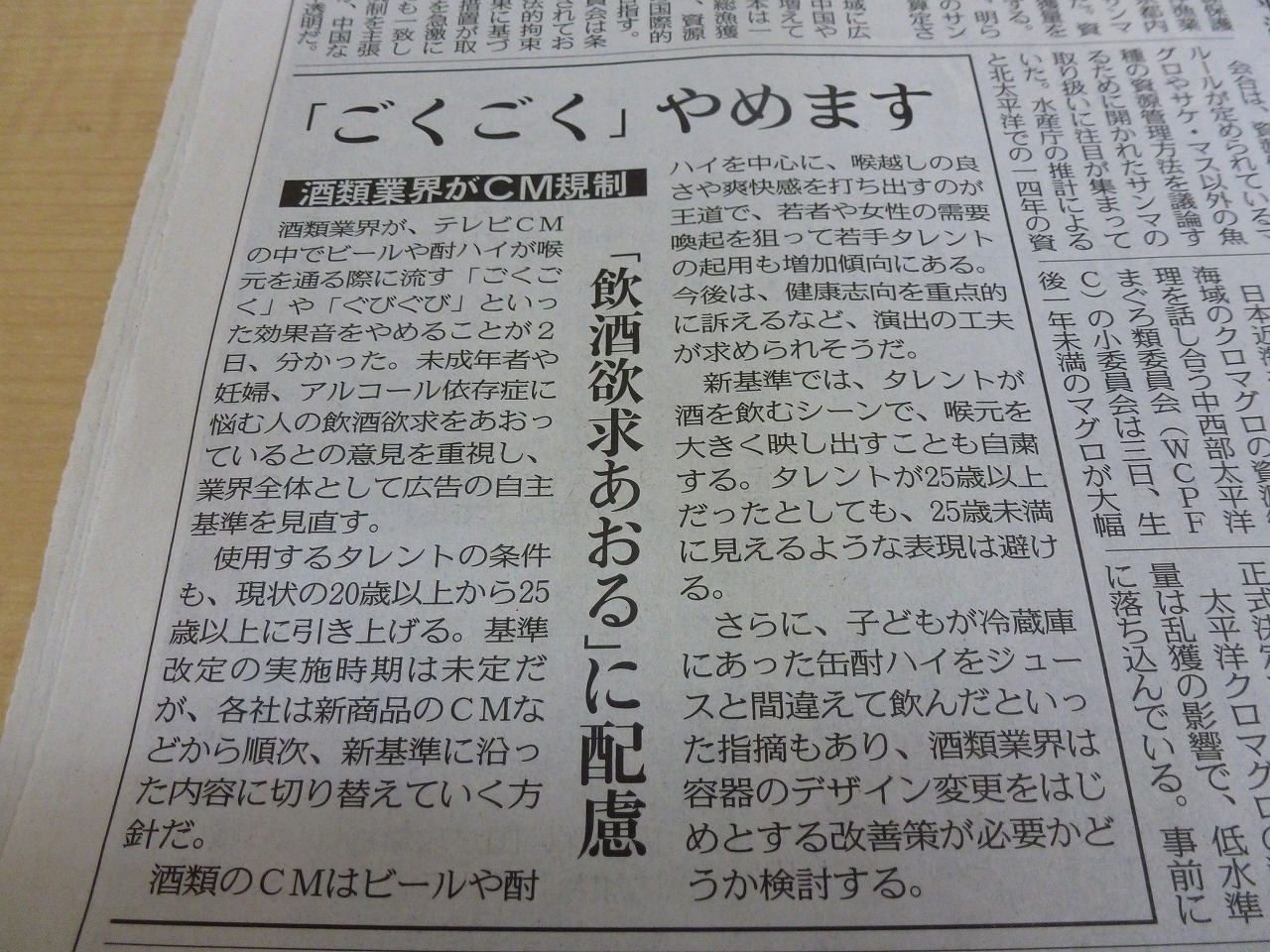 「ごくごく」やめます 酒類業界がCM規制